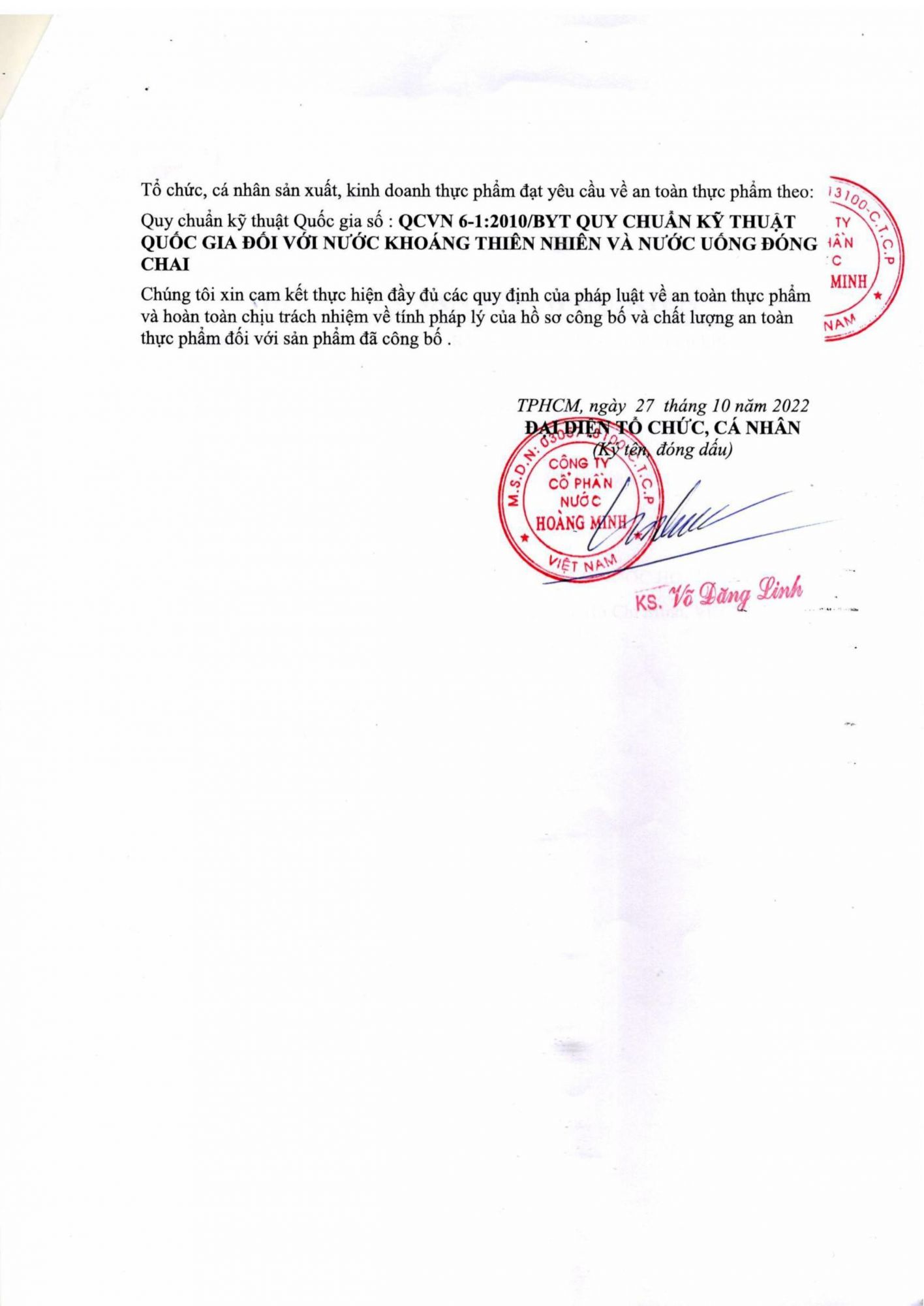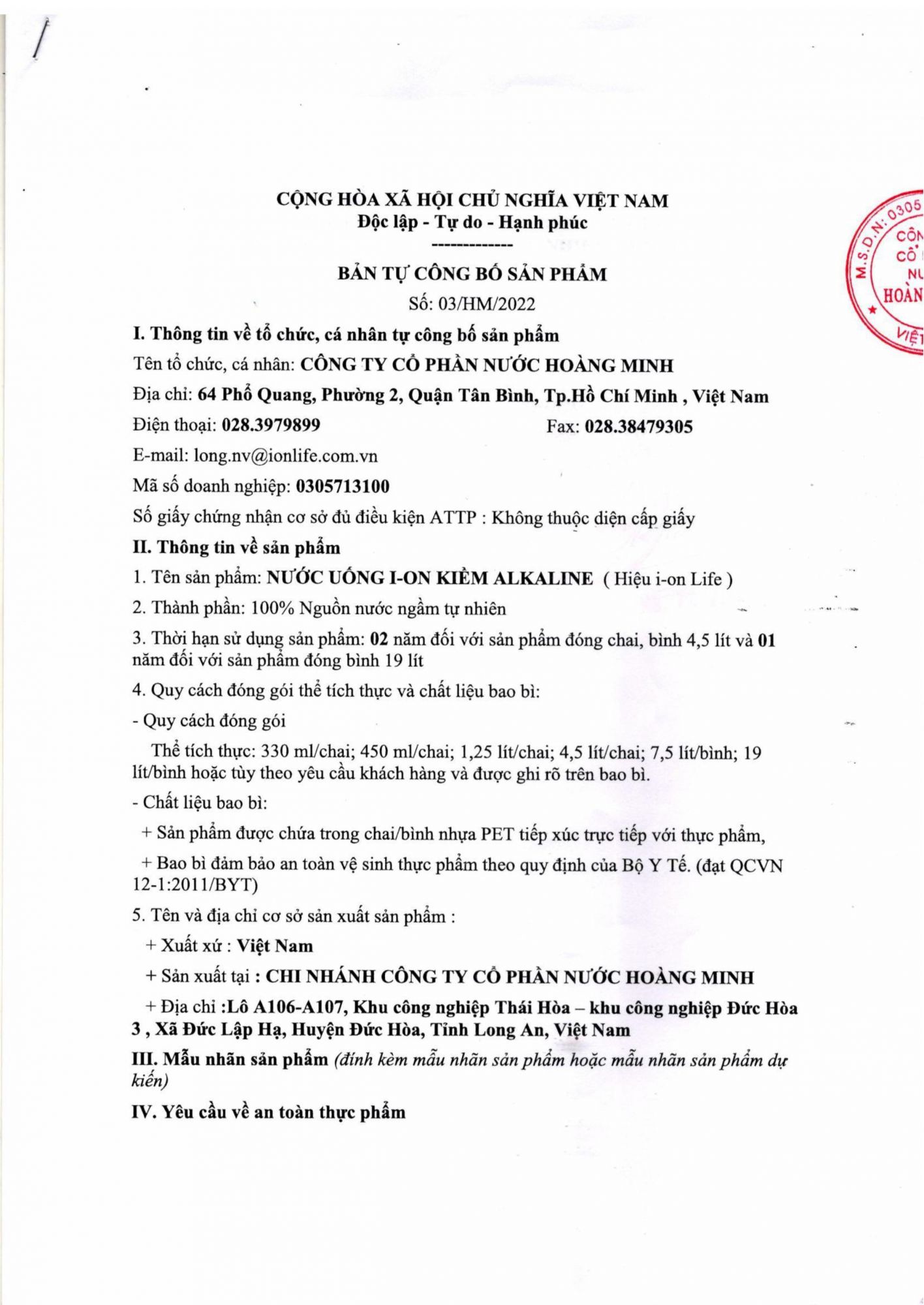 HỒ SƠ CÔNG BỐ SẢN PHẨM 03/HM/2022