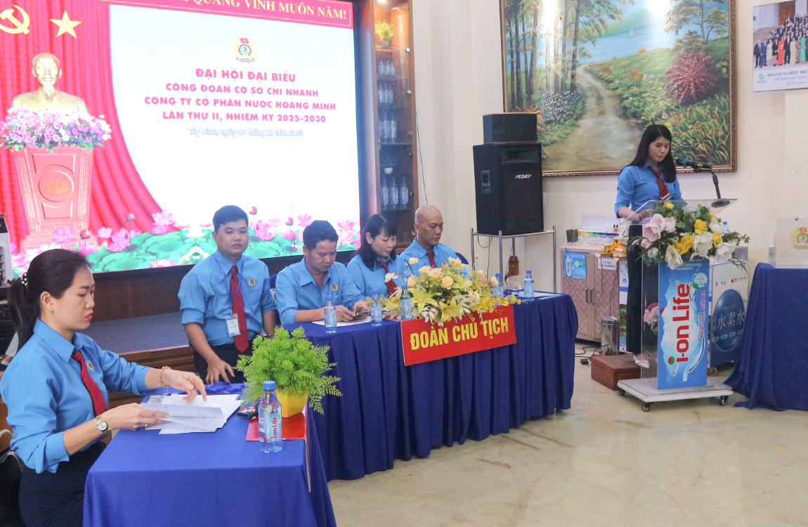 Tại Đại hội Lê Văn Trung - Đại diện Ban lãnh đạo công ty CP Nước Hoàng Minh có phát biểu: Trong suốt nhiệm kỳ 2020–2025, Công đoàn cơ sở đã t trở thành cầu nối vững chắc giữa người lao động và Ban Giám đốc. Chúng tôi đánh giá cao sự đồng hành, trách nhiệm và sáng tạo của đội ngũ Công đoàn trong việc phát động phong trào thi đua lao động giỏi, lao động sáng tạo, mang lại nhiều sáng kiến giúp tiết kiệm chi phí sản xuất và nâng cao năng suất. Bên cạnh đó, Công đoàn đã chủ động trong công tác chăm lo đời sống, đoàn kết, gắn bó trong toàn thể cán bộ, công nhân viên. Hy vọng rằng CĐCS Nước Hoàng Minh ngày càng vững mạnh cùng công ty khẳng định vị thế tiên phong trong ngành nước ion kiềm tại Việt Nam. Xin chúc mừng Đại hội Công đoàn cơ sở Công ty Cổ phần Nước Hoàng Minh và Chi nhánh đã thành công tốt đẹp!