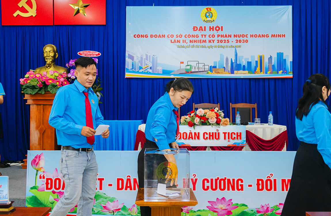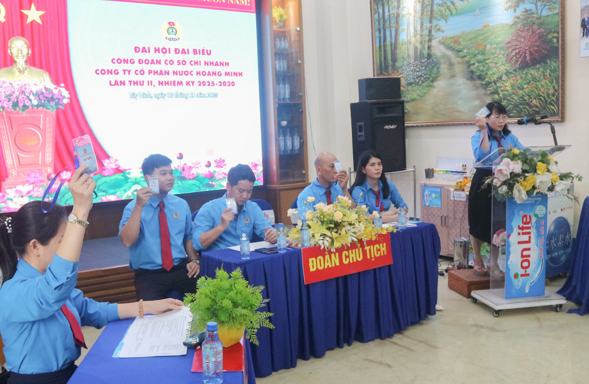 Kết quả, bà Võ Thị Hồng Loan được tín nhiệm tái cử chức vụ Chủ tịch Công đoàn cơ sở Công ty CP Nước Hoàng Minh, và bà Võ Thị Hải Lý được tín nhiệm tái cử chức vụ Chủ tịch Công đoàn cơ sở Chi nhánh Công ty CP Nước Hoàng Minh nhiệm kỳ 2025–2030.