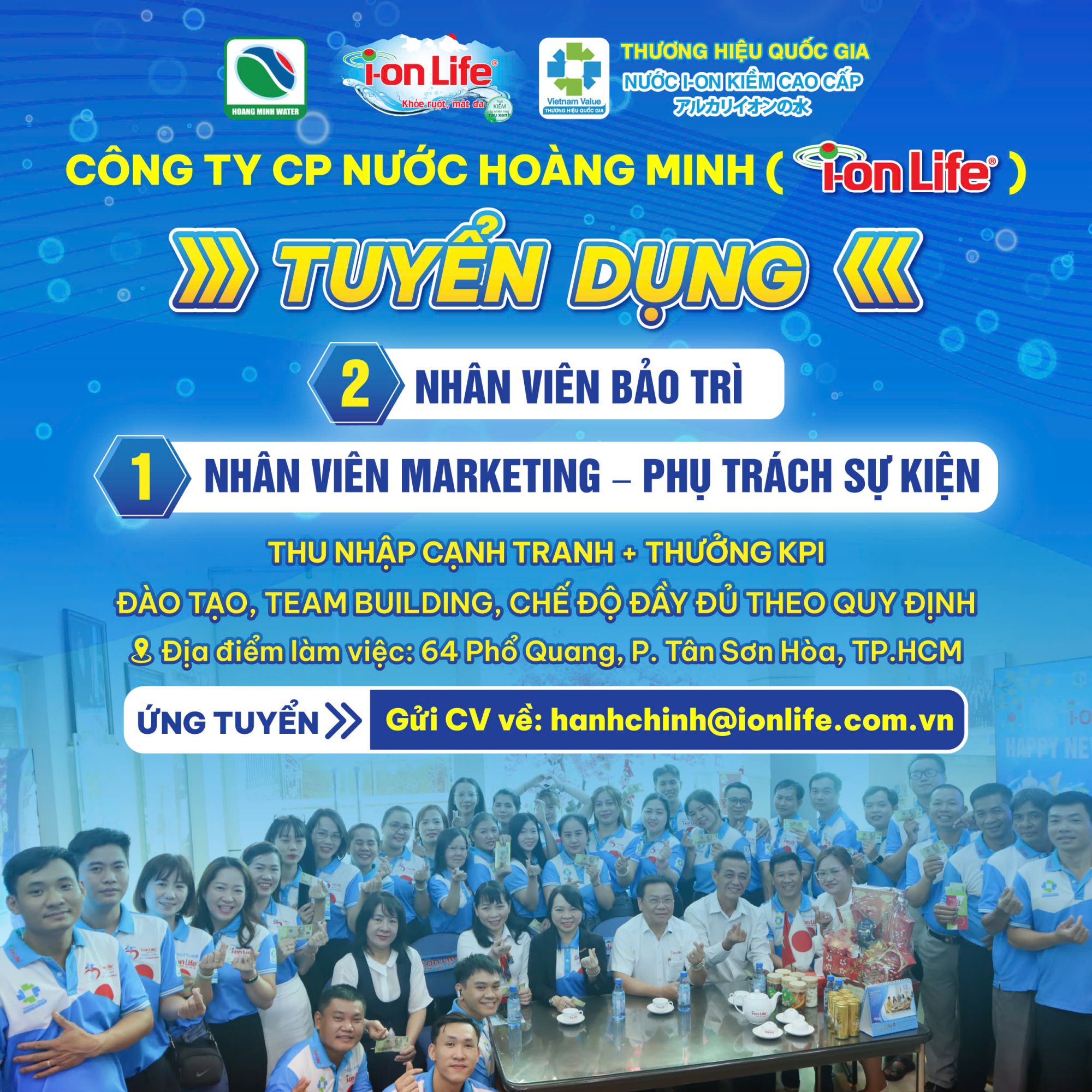 - Ứng tuyển: Gửi CV về hanhchinh@ionlife.com.vn