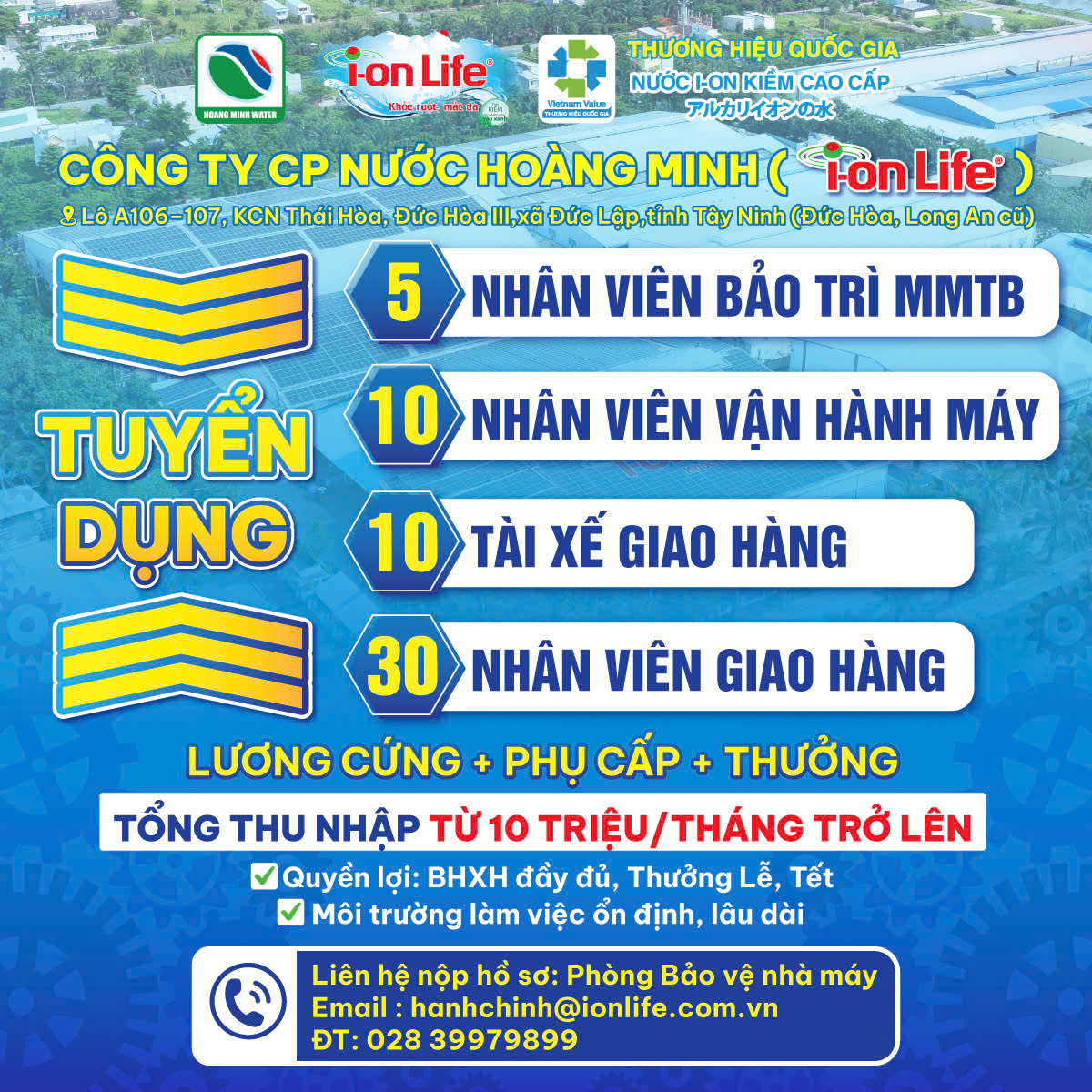 NHÀ MÁY: CÔNG TY CP NƯỚC HOÀNG MINH (I-ON LIFE)