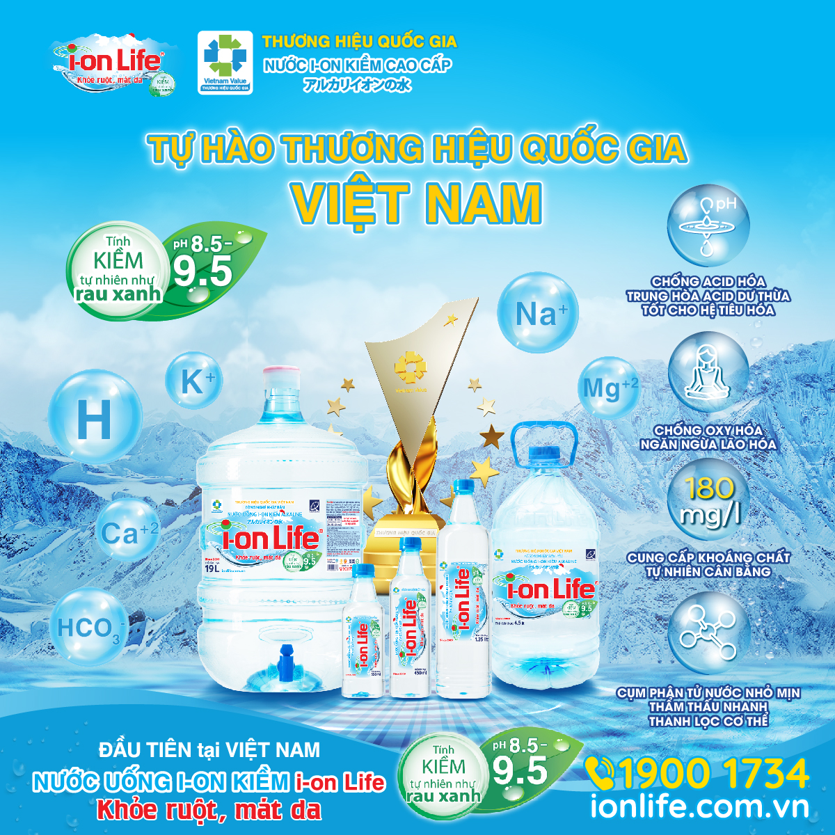 i-on Life thương hiệu nước ion kiềm ĐẦU TIÊN tại Việt Nam có tính kiềm tự nhiên như rau xanh pH 8.5-9.5 giúp trung hòa acid dư thừa trong cơ thể, hỗ trợ tốt cho sức khỏe, đặc biệt là hệ tiêu hóa.