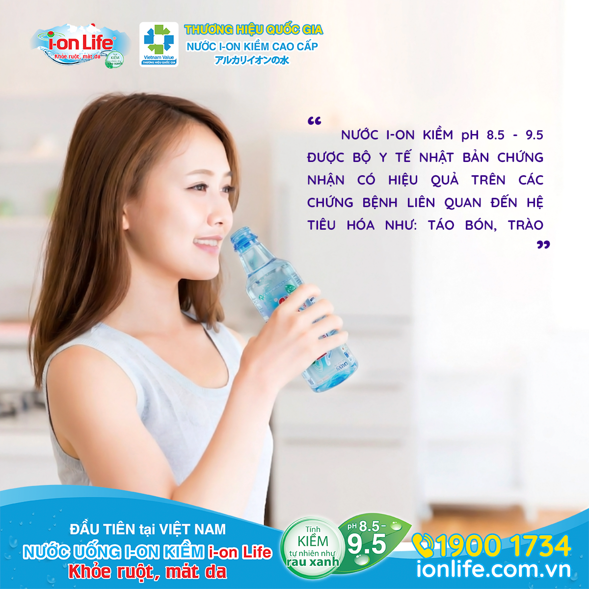 Nước i-on Life với tính kiềm tự nhiên như rau xanh pH 8.5-9.5 giúp trung hòa acid dư thừa trong cơ thể, hỗ trợ tốt cho sức khỏe đặc biệt là hệ tiêu hóa.